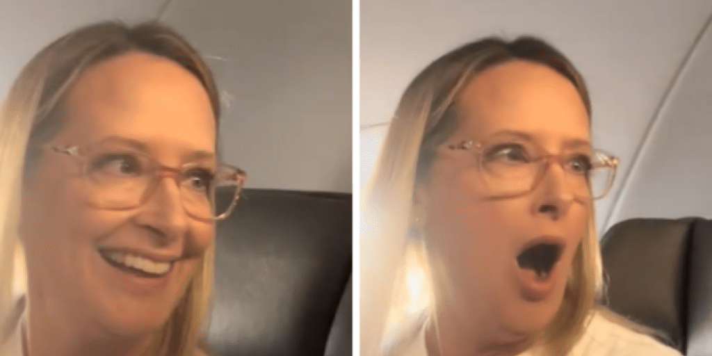 A woman had an epic surprise on her flight when she discovered that the "stranger" sitting beside her was wearing a disguise.Jen Clement was traveling from her home in...